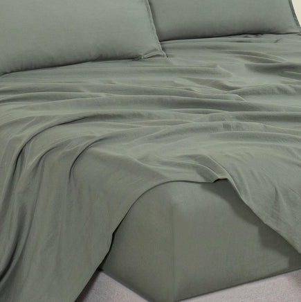 Vintage Washed Microfibre Sheet Set with 1 Pillowcase - Khaki Green - King Single SALE