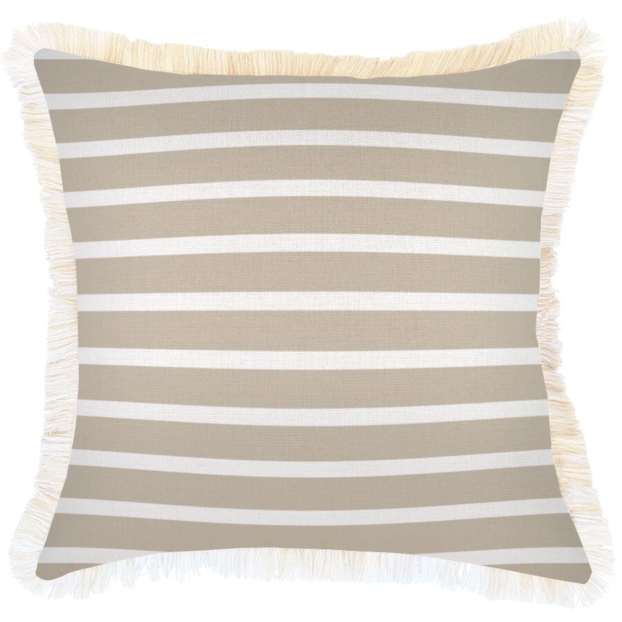 Cushion Cover-Coastal Fringe-Hampton Stripe Beige-45cm x 45cm
