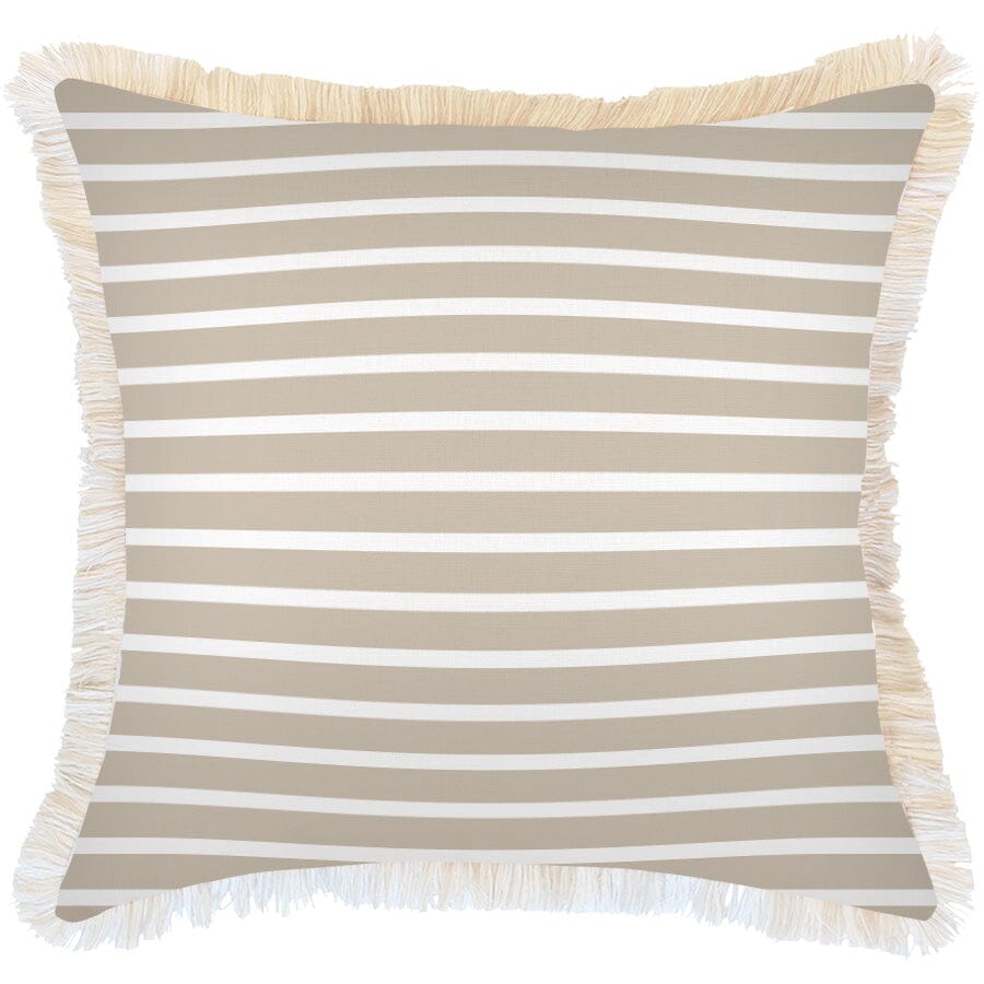 Cushion Cover-Coastal Fringe-Hampton Stripe Beige-60cm x 60cm Kings Warehouse SALE
