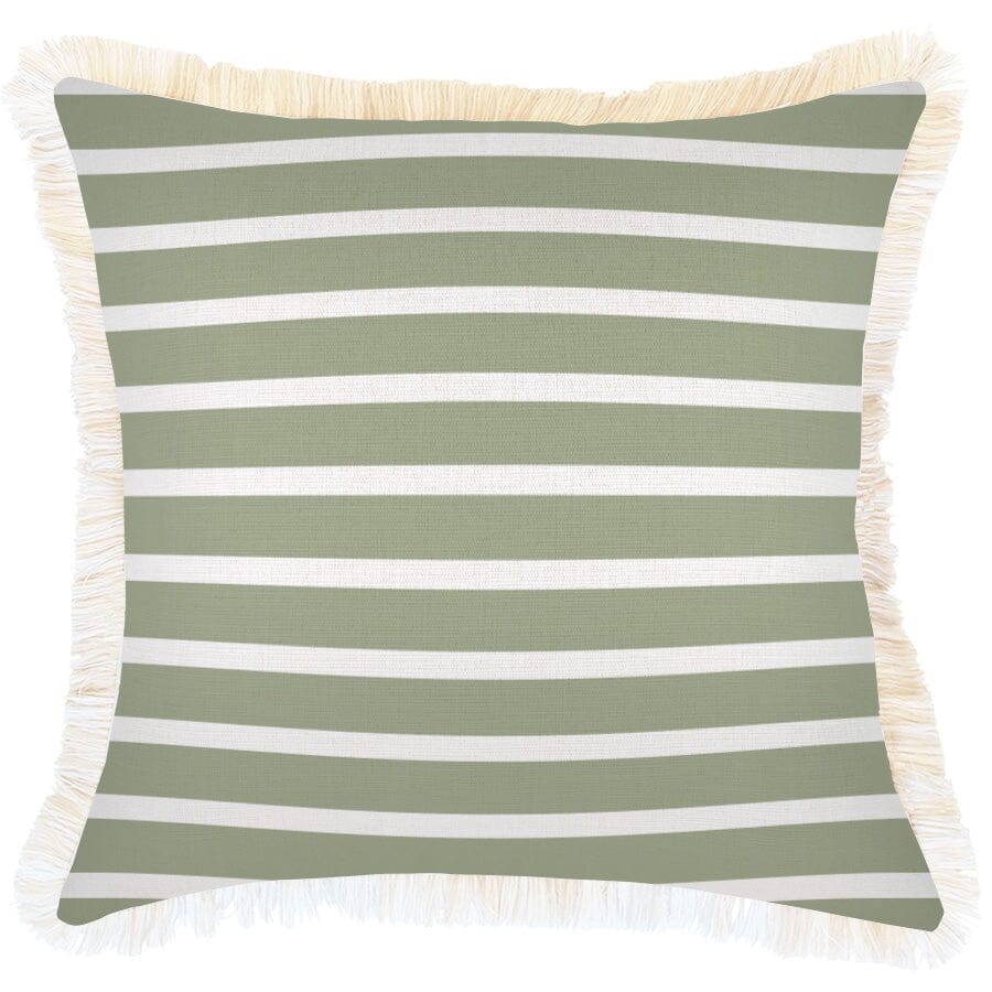 Cushion Cover-Coastal Fringe-Hampton Stripe Sage-45cm x 45cm