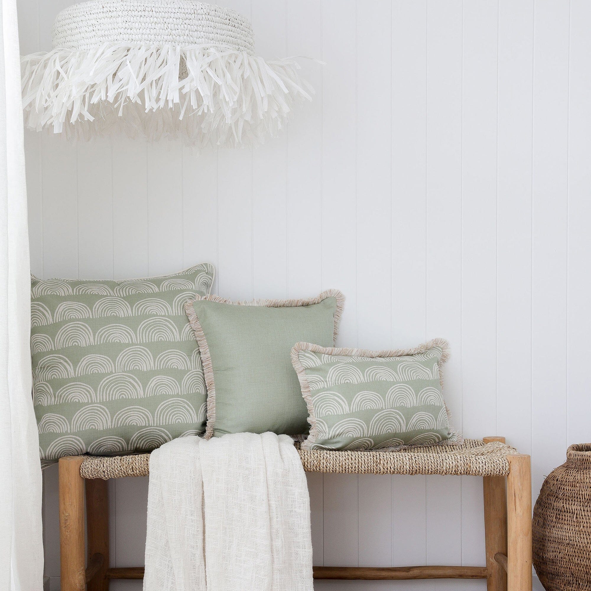 Cushion Cover-Coastal Fringe-Rainbows-Sage-35cm x 50cm