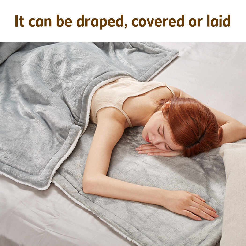 Double-side Flannel Heated Electric Throw Blanket Fast Heating Warm Washable gray SALE