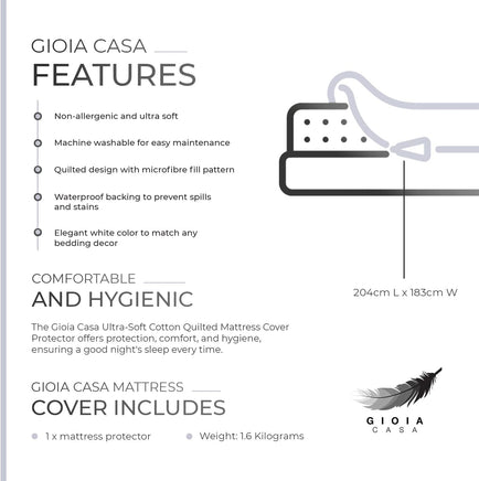 • 1 x Ultra-Soft Cotton Quilted Mattress Cover Protector (Size based on selection)