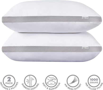 - Gusseted with Breathable Mesh Fabric: The pillows are gusseted with breathable mesh fabric, providing extra loft and support. This design ensures proper alignment of the neck and head, reducing discomfort and enhancing airflow for a cooler sleep experience.