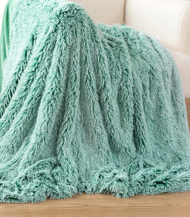 Double Sided Faux Fur Shaggy Throw Blanket - Emerald SALE