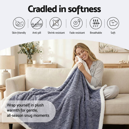 Wrap yourself in luxury with the Giselle Bedding Two-Tone Cable Knit Throw Blanket, the perfect addition to any stylish Australian home. This throw features a distinctive dual-sided design, offering both versatile aesthetics and superior comfort. One side showcases an elegant knitted cable-box pattern for a high-end, smooth, and modern textural appearance, while the reverse side is a solid-colour ultra-soft plush fleece, allowing you to switch up your décor instantly. Expertly crafted from double-sided fleece, it delivers an ultra-plush and cosy texture that provides exceptional warmth without being heavy, ensuring a comfortable all-season layer. With a generous size of 203cm x 230cm, this blanket is genuinely multi-purpose, ideal for covering a sofa, adding warmth to your bed, or taking along on travels. Beyond its beautiful design, it is built with premium quality construction and is delightfully easy-care and machine washable, guaranteeing enduring quality and convenience.