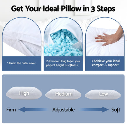Experience personalised comfort with the Giselle Bedding Adjustable Pillow. Customise your ideal loft and firmness by adding or removing the high-resilience shredded memory foam filling. Its unique dual-layer design includes a 100% cotton cover and soft fibre padding for a luxurious feel. Perfect for all sleepers.
