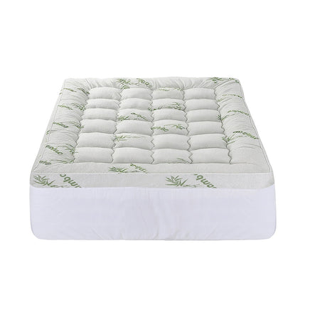 Elevate your sleep with the Giselle Bedding Pillowtop Topper, featuring an 11cm plush profile of 1500GSM hollow fiber beneath premium bamboo fabric. The 3D wave-check quilting enhances airflow while distributing weight evenly across your mattress. Designed for deep mattresses up to 45cm, this highly breathable topper arrives vacuum-packed for hygiene and is machine-washable for effortless maintenance.
