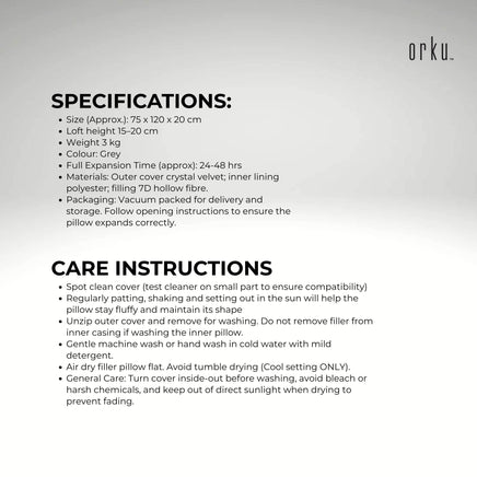 Package Includes: 1 x Orku Body Pillow, Instruction sheet.