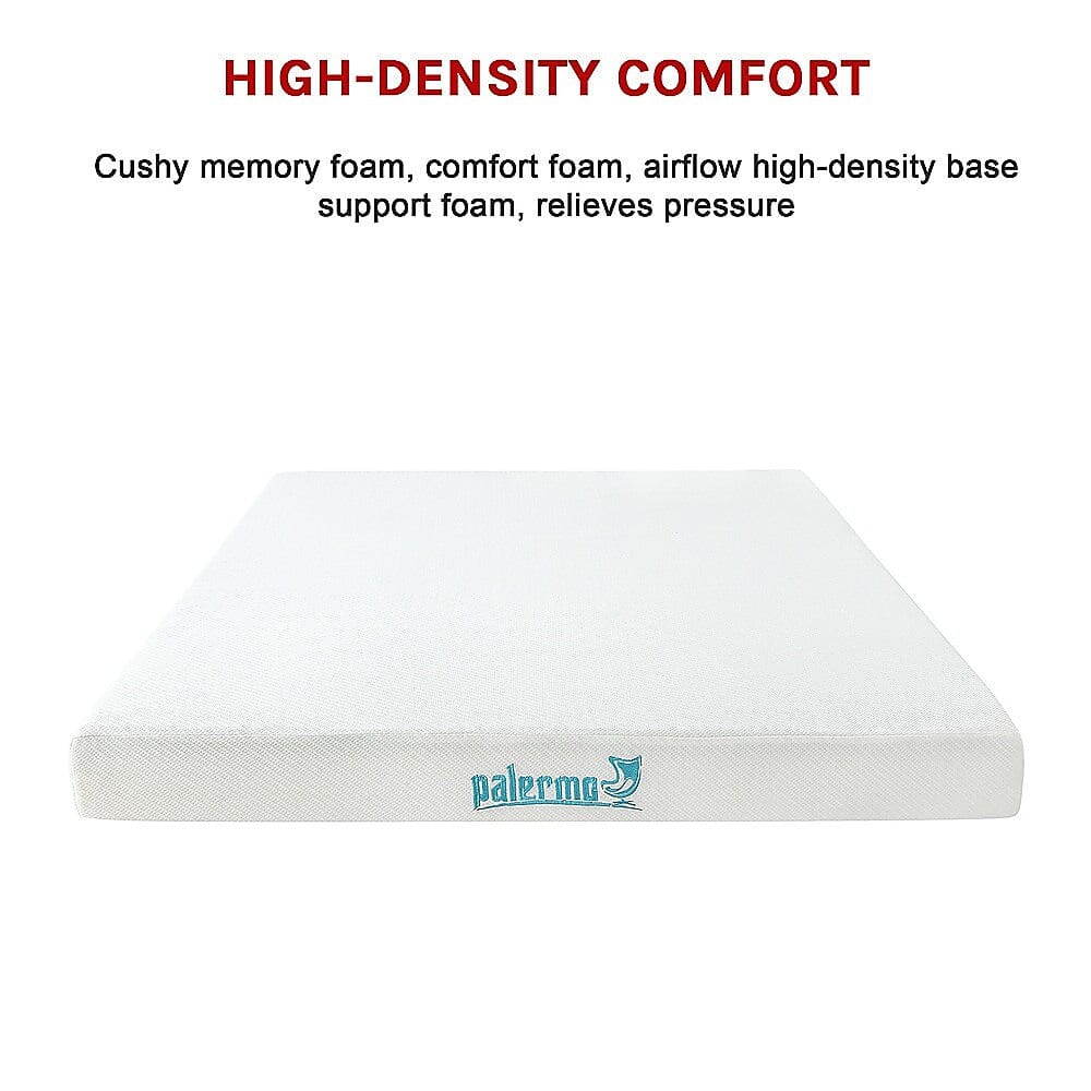You'll feel like a queen or king with Palermo's comfy memory foam queen mattress. With six inches of body-conforming memory foam, you'll think your bed was custom made for your exact dimensions. The magic comes in the memory foam. Super-sensitive to changes in temperature, the foam gives as it senses the head of your body, allowing it to mould to every curve. Its full-support, high-density foam base layer makes this mattress extraordinarily durable, making your custom comfort last for years. The foam bears theCertiPUR US seal of approval, assuring you of its durability, quality, performance, and low indoor emissions.