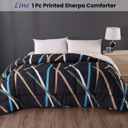 The Line 1 Pc Printed Sherpa Comforter by Ramesses is a luxurious addition to any bedroom, promising both style and comfort. Adorned with a contemporary geometric pattern of intersecting lines in contrasting hues of white, black, blue, brown, and olive, this comforter exudes modern elegance. Offering visual appeal while inviting a touch. Made from from quality and soft touch materials, making it an ideal companion for chilly nights.