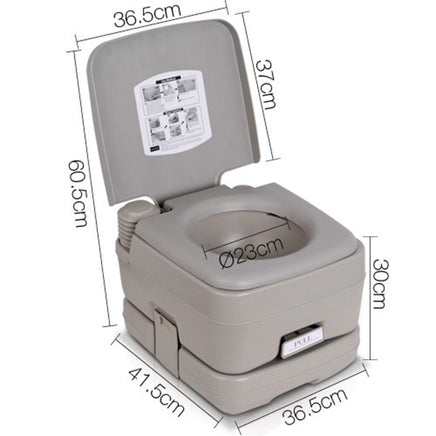- Portable toilet dimensions: 34.5 (L) x 40.5 (W) x 60.5 (H) cm
