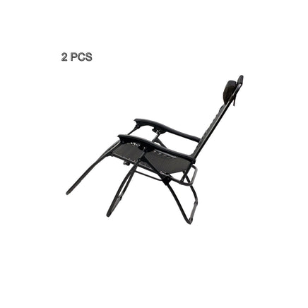 - Features: Fully-adjustable, reclining, durable powder-coated steel frame, padded back and seat, UV protected, heavy-duty fabric, plastic arms with easy locking system, removable padded headrest, folds flat for easy transportation, pack of two chairs