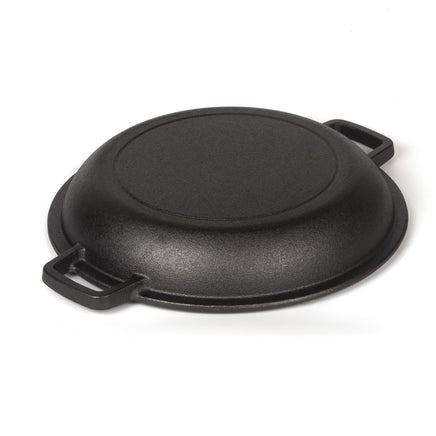 Cook like a pro with this heavy-duty 2-in-1 Cast Iron Dutch Oven and Skillet Set perfect for stews, roasts, frying, and baking.