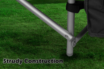 Made of anodised aluminium round pipe, a central, roll-out aluminium worktop, 2 side shelves made of coated hardboard and with 2 fabric cabinets with zip fastener and inner storage compartments. With wipeable protective film under the aluminium worktop.