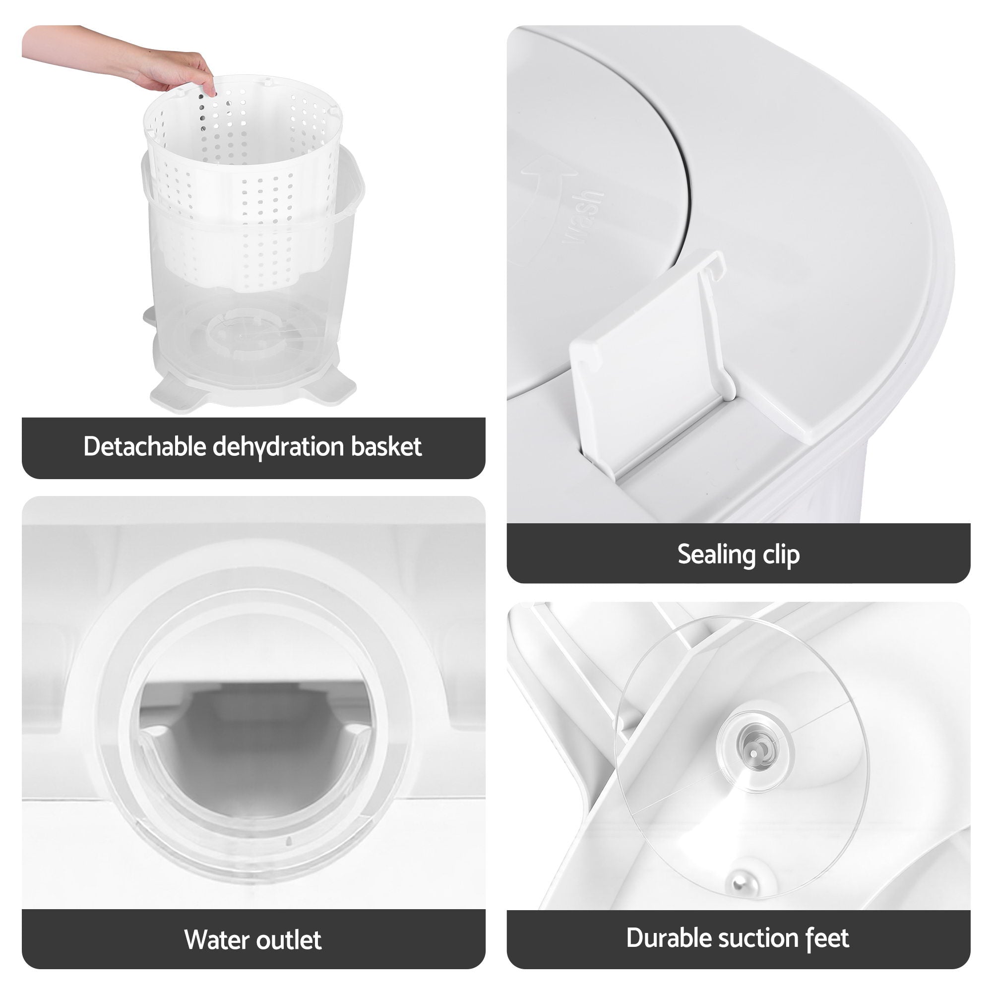 Devanti Portable Washing Machine Manual Spin Dryer Compact for Camping Caravan Apartment