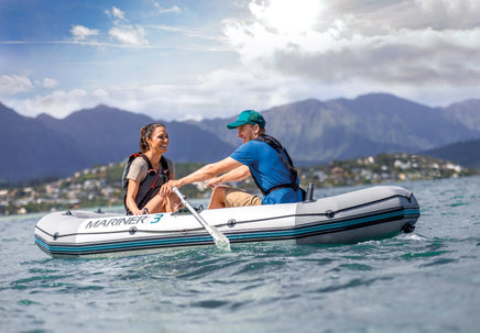 INTEX� Mariner 3 Boat Set 68373The Intex Mariner 3 Rigid Inflatable Boat features a hard rigid floor, making it their best hunting/fishing boat by far. Here's why: the rigid floor in the Intex Mariner 3 inflatable boat provides unmatched stability so you can stand up and cast during calm stretches of the river.