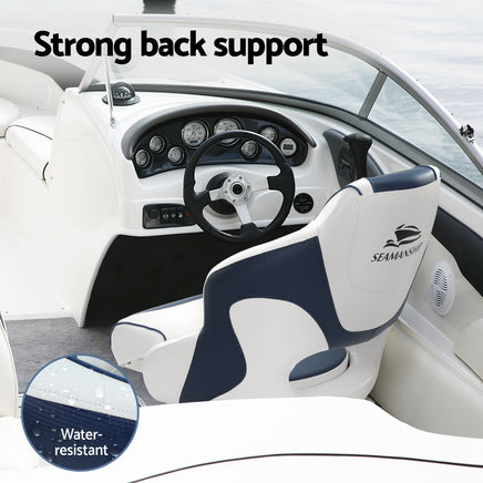 Seamanship Captain Bucket Boat Seats Flip Up Bolster Swivel 15cm Padding Blue
