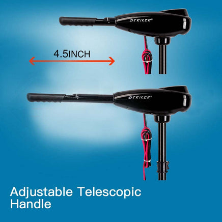 With super-low power consumption, the Genuine Striker gets the most out of your 12V battery. And thanks to its clear LED display, you will always be in control of the power. Suitable for small water crafts such as inflatable boats, canoes and aluminum fishing boats, refer to the below graph for boat size.Simply twist the handle and sneak up on the fish at the optimal speed. With five forward speeds and three reverse speeds, you'll make the right approach every time.