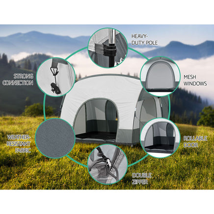 Embrace the great outdoors with a Weisshorn Camping Car Tent. With convenient rear access, you can easily connect the tent to your vehicle, extending your relaxation space and giving you easy access to your gear. The tents are made with quality PU2000 water-resistant Oxford fabric with UV resistance, ensuring your protection from all kinds of weather. Heavy-duty poles keep the structure solid and stable, so you can relax for long periods. Each opening has a double-sided zipper for convenience and can be rolled up for better ventilation. As well as extending your available space, built-in storage pockets let you store all your camping essentials. Enjoy ultimate convenience on your next road or camping trip with a Weisshorn Car Camping Tent.