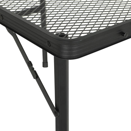A classic camping essential, the Weisshorn Folding Camping Table is a must-have on your next cross-country camping trip. The table can be easily folded down to a portable size, while the leg extensions can be placed in the included storage bag. The strong aluminium construction gives the table a weight capacity of 25kgs while remaining portable and lightweight. The table is anti-rust and corrosion, making it perfect for outdoor adventures like picnics, fishing, camping and beach days. The steel mesh tabletop provides proper drainage in case of rain and features smooth rounded corners for safety. The table can be height adjusted with the included leg extensions. Non-slip feet and secured locking features ensure the table stays in place throughout the day. Simple to set up, the Weisshorn Folding Camping Table is the perfect addition to your camping swag. Beat the summer rush and get yours today.