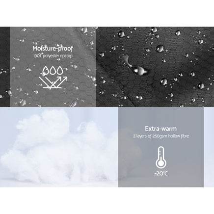 A blanket (wrap it around). A mat (unzip it to open flat). And a sleeping bag rolled into one. Our Weisshorn Sleeping Bag is the one you take for any outdoor adventure in any weather condition. Made with a 190T polyester ripstop outer layer, a 190T polyester pongee inner layer and filled two layers of 260gsm hollow fibre filling, the sleeping bag offers superb warmth that outrivals even your much-loved quilt at home. Soft, breathable and utmost comfort in unforgiving conditions. Even with all the layers of warmth, our extraordinary sleeping bag is also extremely lightweight and compact. It is easy to carry for long treks, hikes and climbs and its all-weather protection and tear-resistance ensure it remains in good shape, even if you are not. So, carry on enjoying the great outdoors with the Weisshorn Sleeping Bag. We have got you well-covered.