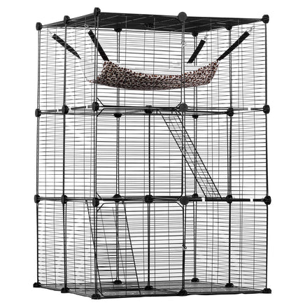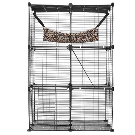 VEVOR Large 3-tier Cat Cage, 28 x 28 x 41", DIY Detachable Metal Wire Durable Cat Enclosure, with Large Hammock 2 Ramp Ladders, Fit for Cats Exercise Indoor & Outdoor, Ease of Assembly, Black