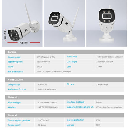 Packed with the latest CCTV technology, our UL-TECH Wireless Security Camera System provides 3MP full HD resolution with ultra-clarity. Its wireless design means no more ugly cords or complicated wiring to get the systems going. Each camera has 3 megapixels resolution and comes with a 1/3" CMOS image sensor, a built-in IR-cut filter, and four high-quality infrared LEDs. Simply plug in and start operating with minimum hassle. With its high-efficiency H.265+ video compression capability, you can triple the recording time by lowering the bitrate and occupying less bandwidth, saving you hard drive costs. It features clear two-way audio and talkback for clear communication, and you'll be instantly alerted by the customizable motion detection system via email in case of a break-in. It has an IP65 waterproof rating and can be used outdoors or indoors with minimum hassle. In the event of a power outage, all of your data is protected effectively. Better still, you can download the app and enable 8-channel simultaneous live viewing via your smartphone. The system comes with HDMI and VGA outputs so you can connect your best monitor and experience live surveillance. Your purchase also comes with a 1TB hard drive for all your surveillance storage needs. Protect what matters to you most with a UL-Tech Wireless Security Camera System.