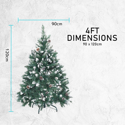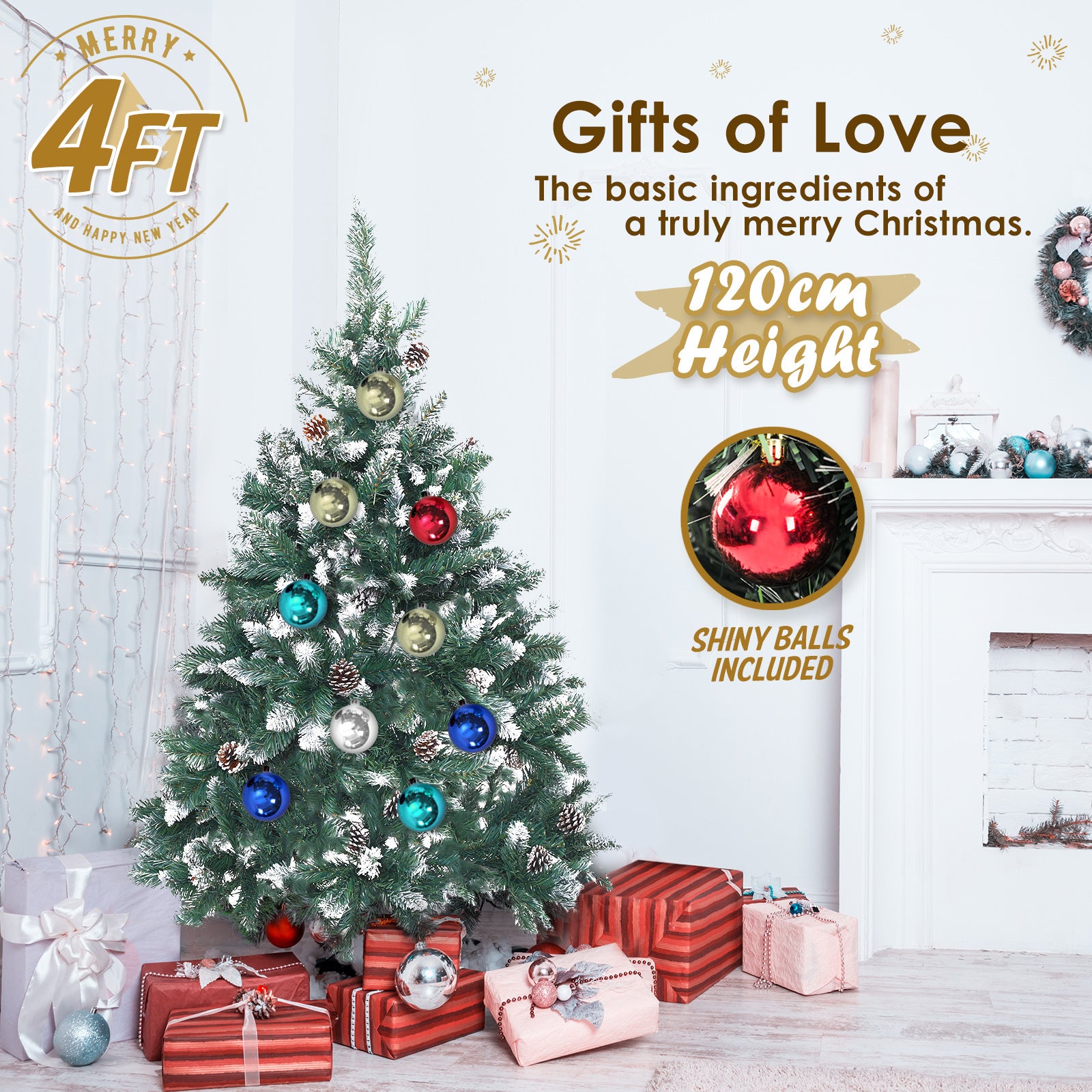 Home Ready Snowy Christmas Tree Xmas Pine Cones 4Ft 120cm 390 tips + Bauble Balls