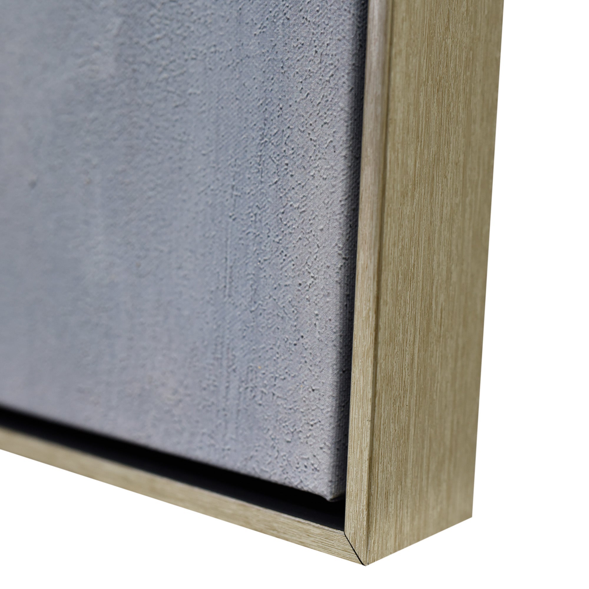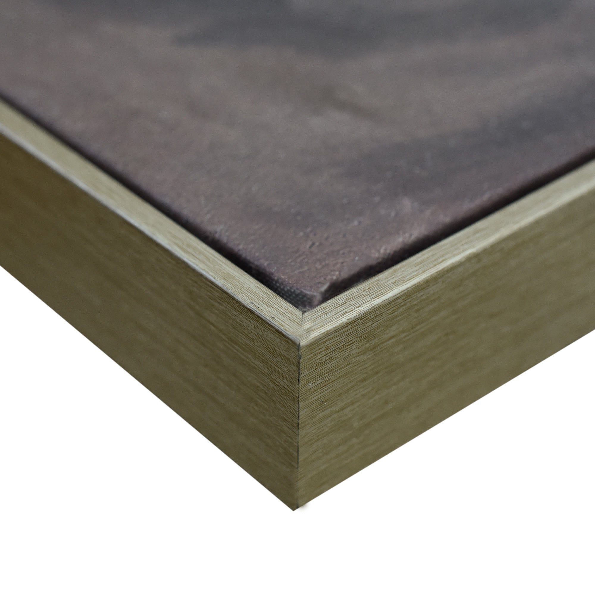 Stretched and gallery wrapped around a wooden stretcher and finished with a floating frame. There is a gap between the frame and print, which creates the floating effect and literally makes the canvas print stand out even more.