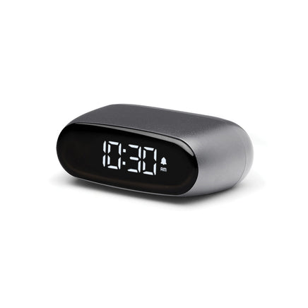 Lexon Minut Mini Alarm Clock - Gunmetal - Minut is a stylish and tiny alarm clock that fits in the palm of your hand. Its ultra compact size makes it easy to fit right on a nightstand and pack for travel. Featuring easy-to-use touch controls to light up the screen and trigger the snooze function, Minut gives you some extra shut-eye when needed. Equipped with pure VA LCD display, Minut allows you to check the time clearly at any position in the room. Crafted in a sleek aluminum finish, this cute little alarm clock is the perfect accessory to upgrade your bedroom decor. Offering up to 6 months of battery life, Minut is rechargeable via USB-c using the supplied cable.