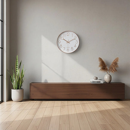 Modern Rose Gold Wall Clock – Silent Non-Ticking Quartz Battery Operated Design