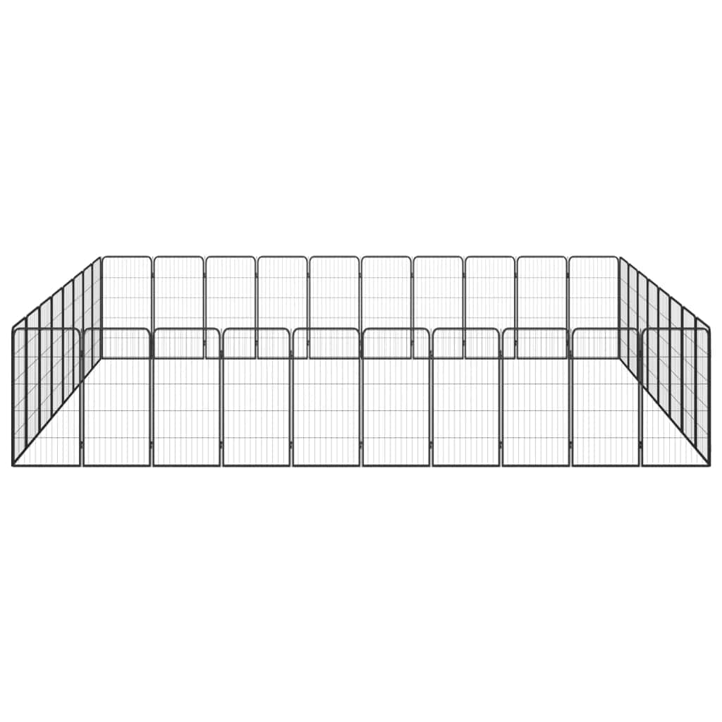 This heavy-duty dog playpen will make a perfect play paradise for your dogs! It will be a great choice for professional trainers and dog lovers alike. Sturdy material: The dog kennel is made of powder-coated steel, sturdy and durable, ensuring years of use with little maintenance.Safe exercise space: Providing ample exercise space, the steel-bar walls of the puppy playpen help prevent mischief and unexpected accidents while enabling ventilation.Firm-secured accessories: The included rods connecting each panel can be inserted into grassland, which provides great stability.DIY assembly: The outdoor dog kennel features multiple panels, so you can assemble it to any shape and size you want. Note:Each product comes with an assembly manual in the box for easy assembly.