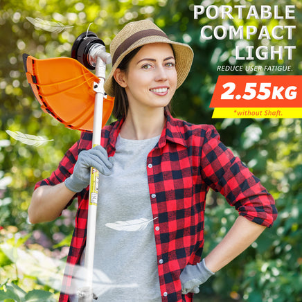 This DYNAMIC POWER Brush Cutter features a super light 2.55kg 26cc engine; and with Dynamic Power exclusive Easy Starting system, you're only one easy recoil start away from quality garden maintenance. Utilising premium Commercial Alloy, features a commercial grade quick connect couplings equipped with dual ball-bearing floating centres. Correctly Sized at 182cm Long, genuine commercial fastening ensures superior stability - essential for safe handling. It now comes with 5 different attachment heads to suit different tasks.