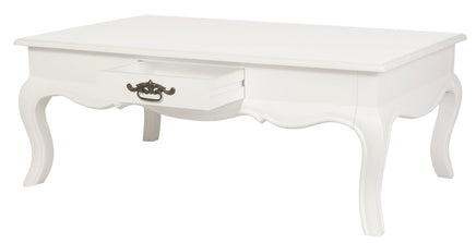 Elevate your living space with the timeless elegance of the French Provincial 2 Drawer Coffee Table. Crafted from solid mahogany timber and accented with brass hardware, this piece blends classic charm with practical functionality. Its two spacious drawers provide convenient storage, while the smooth tabletop adds a refined touch to your décor. Measuring 115.0 x 75.0 x 45.0 cm and weighing 24.0 kg, this coffee table fits perfectly in both modern and traditional settings, making it incredibly versatile. Whether you choose the rich Light Pecan finish or the elegant White, this piece complements various interior styles effortlessly.