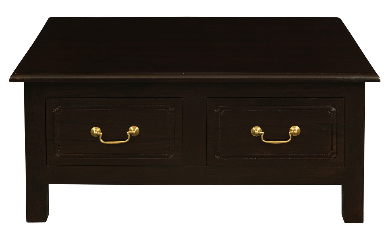 The Tasmania 4 Drawer Coffee Table brings timeless style and exceptional practicality to your living space. Expertly handcrafted from solid mahogany timber, this piece boasts exceptional durability, ensuring it becomes a cherished part of your home for years to come. Available in rich finishes of deep Chocolate or warm Mahogany, each colour beautifully highlights the timber's distinctive natural grain. The design embodies classic furniture aesthetics, marrying elegant simplicity with functional design, perfect for spaces that value both practicality and sophisticated charm.