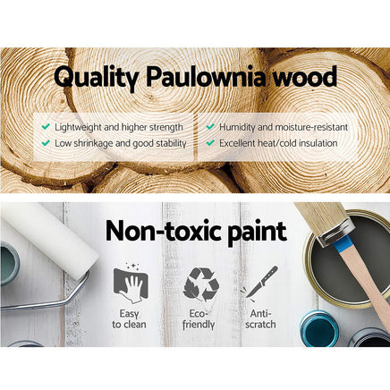 With its charming retro appeal and curved accents, our Artiss 3-drawer Storage Cabinet exudes timeless elegance all over. The three deep drawers with vintage metal handles provide ample space for practical storage and also come with drawer stoppers. Crafted from solid Paulownia wood and MDF board, the cabinet is stable and durable and features round corners for safe use and anti-scratch feet pads to keep floors and surfaces pristine even with robust use. Best of all, the cabinet comes fully assembled and a wall mount is included as an extra safety measure.