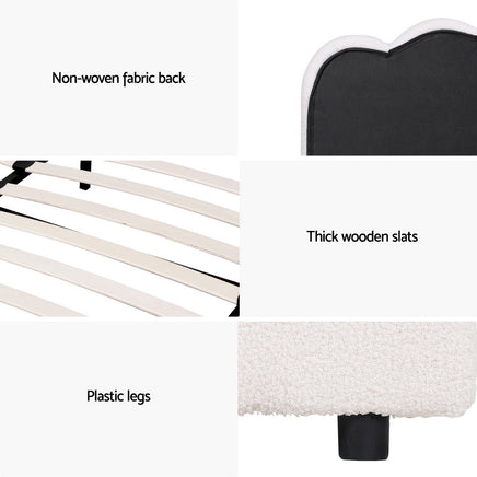 Introducing our elegant Artiss bed frame: upholstered in boucle fabric, featuring a gas lift storage mechanism, wooden frame with slat support, padded headboard, smooth edge finish, and sturdy metal connectors for a blend of style and functionality in your bedroom.