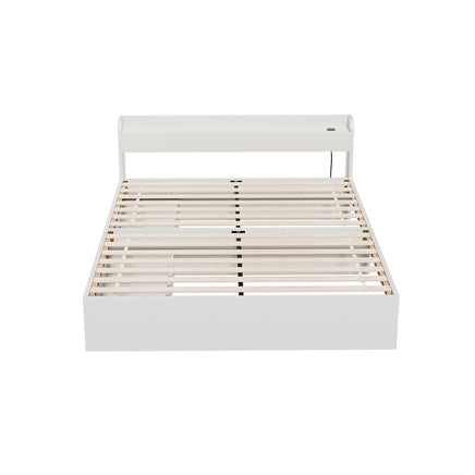 It's easy to sleep well on the Artiss Aura Bed Frame. Made from thick 15mm and 18mm particleboard with 12mm plywood slats and a white paper finish, the bed frame is designed for long-lasting use and longer-lasting sleep. The thick plywood slats and centre beams provide total support, and noise-free use, and improve the life of your mattress. It features a multifunctional design that allows you to use the bed for storage and to charge your phone overnight. Two drawers with smooth castor wheels can be installed on the left or the right for convenient storage. The headboard has smooth edges and plenty of room for your bedroom essentials. It also features two USB charging ports connected to a 200cm cable for convenience. While you power down for the night, you can power up with the Aura Bed Frame from Artiss.