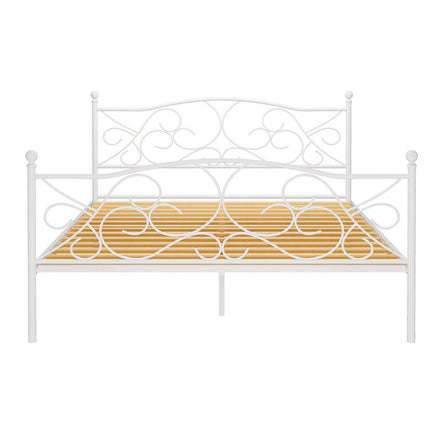 Looking for an affordable bed frame that doesn't compromise on quality or style? Look no further than the GROA Bed Frame from Artiss. This simple, Provincial style bed features an enhanced powder-coated and rust-resistant steel frame with strong and wide plywood centre slats. The sturdy steel frame offers excellent support and stability, while the smooth and sleek plywood platform keeps your mattress securely in place and well-ventilated. The glamorous hollow-out design in the headboard and footboard give the bed a lovely look with alluring appeal. It features ample space underneath to fit trundle drawers or other storage solutions, perfect for keeping your bedroom tidy. Plus, its neutral colour scheme ensures that it will complement any bedding or decor you choose to pair it with. Practical, functional and stylish, the GROA Bed Frame from Artiss is an easy purchase.
