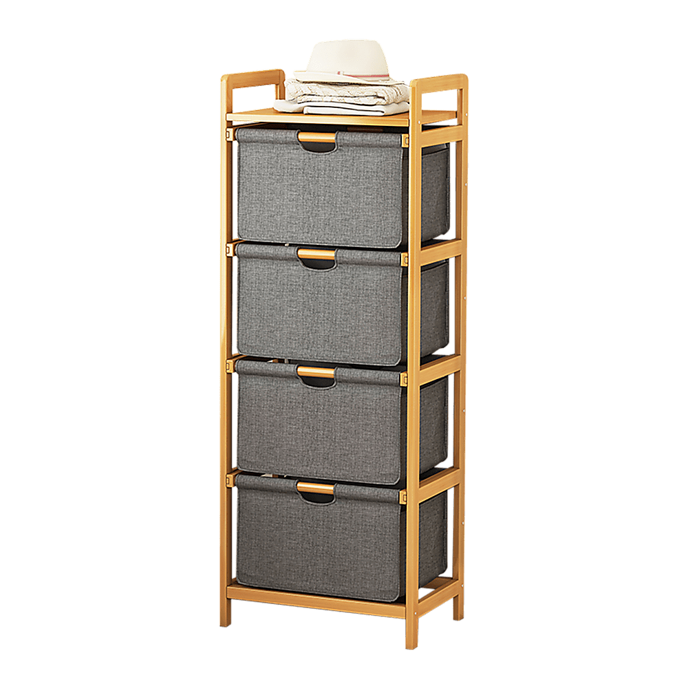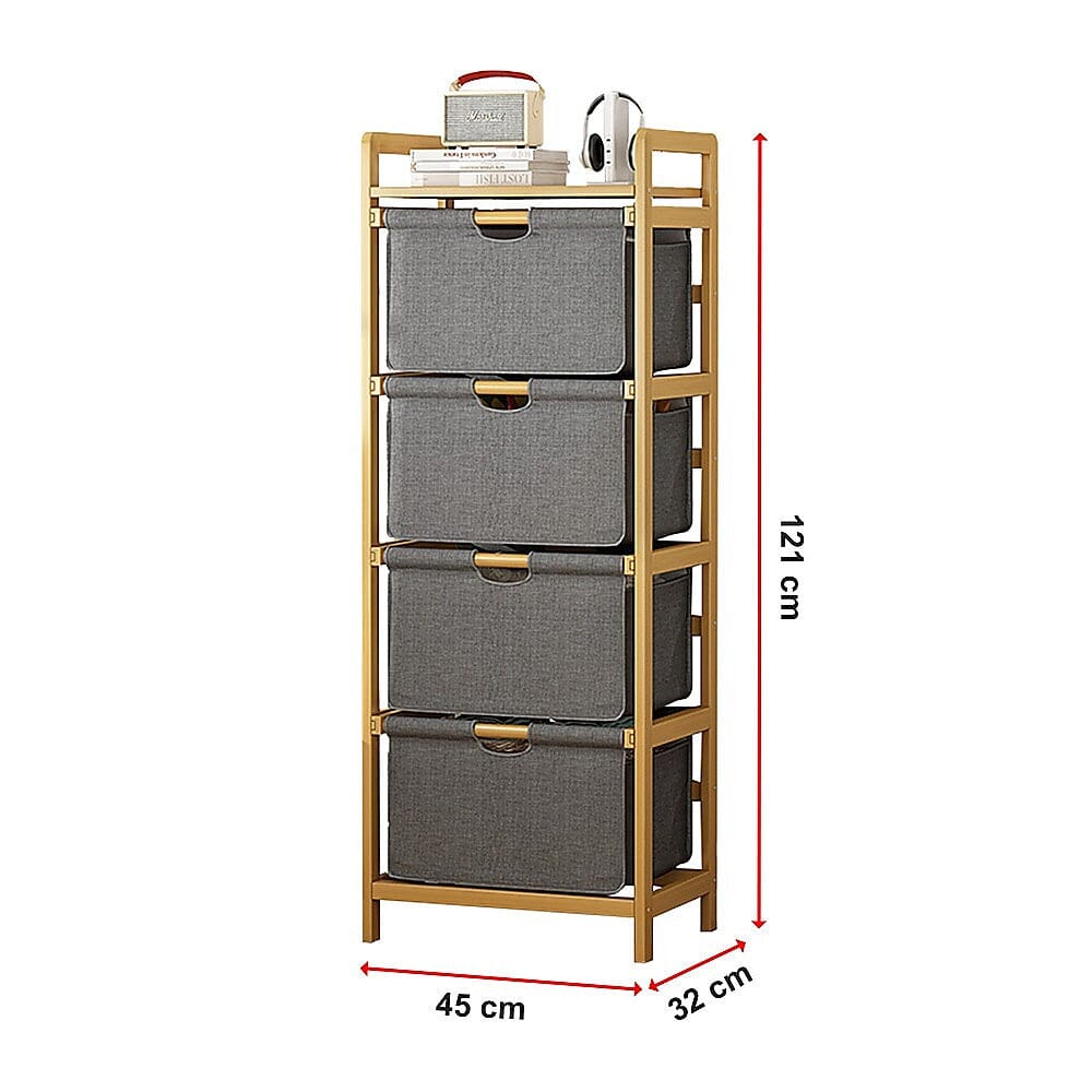 Bamboo Shelf with Storage Hamper – Wooden Frame Unit with 4 Removable Laundry Bags x 1