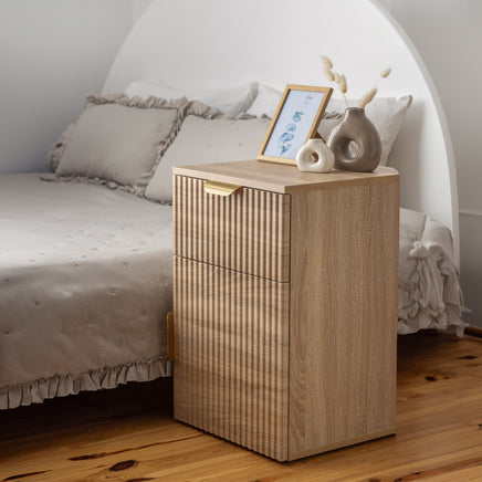 PORTO BEDSIDE TABLE - NATURAL OAK - FLUTED - PULL BRASS