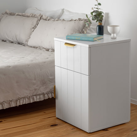 PORTO BEDSIDE TABLE - WHITE - VJ PANEL - PULL BRASS