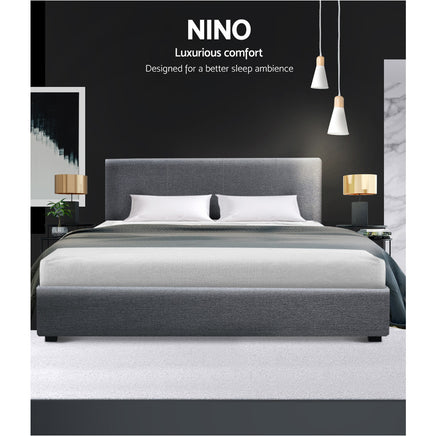When is a bed more than a bed? When it uses a Artiss Nino gas lift bed frame. On the outside, the bed frame looks like just any other quality bed frame. Beautifully padded with generous foam and covered in premium faux linen fabric. Strong steel frame with high grade steel centre rails and arched slat base. Large and comfortable headboard. But with one easy gas lift of the bed base, the bed frame becomes an instant storage area with acres of space for your bedding essentials. Simply store your extra pillows, bed sheets, cushions and more in the storage compartment and hide them away for the season. Have more and expand your home storage capacity with just a lift of your hands with the Artiss Nino gas lift bed frame.