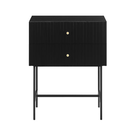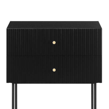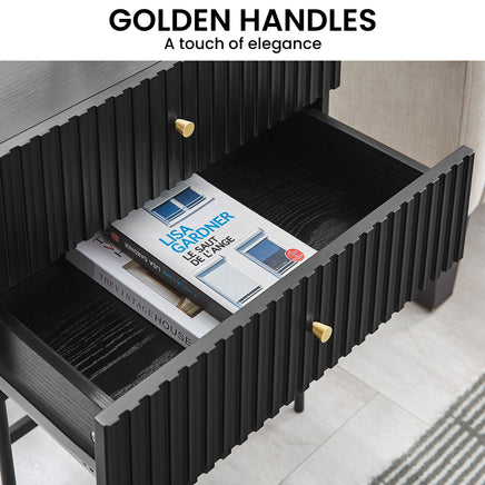 Infuse your living space with contemporary elegance with the Arden Slender Fluted 2-Tier Drawer Side Table. The slender fluted design introduces a modern take on luxury, and the two drawers with elegant golden handles offer convenient storage for your essentials, ensuring a tidy environment.