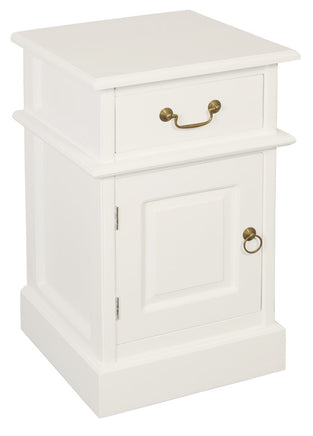 With its thoughtful design, the Tasmania bedside offers both functionality and style. The single drawer, adorned with a classic brass handle, provides easy access to essentials, while the lower cabinet with a solid door offers concealed storage to keep your space tidy. Measuring 40 cm wide, 38 cm deep, and 66 cm high, this piece is compact yet spacious enough for bedside storage needs. Best of all, it comes fully assembled, so you can enjoy it immediately without any hassle.