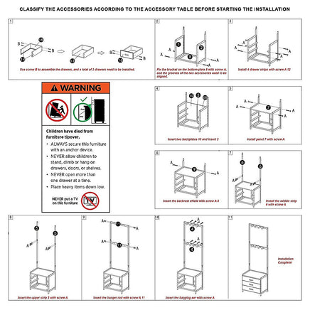 • NEVER allow children to stand, climb, or hang on drawers, doors, or shelves.