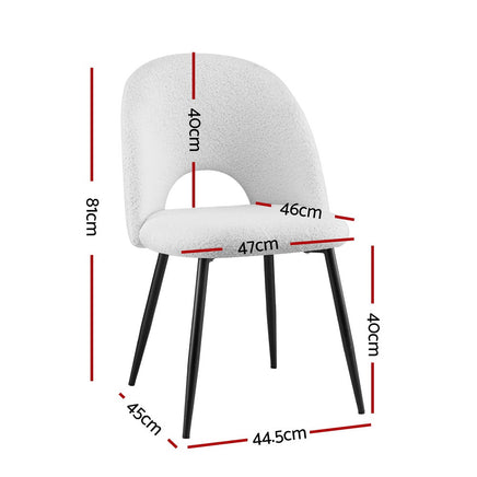 Enhance your living space with Artiss contemporary accent chair featuring premium sherpa fabric upholstery. The ergonomic curved backrest with hollow design promotes airflow, paired with high-density foam cushions for lasting comfort. Sturdy powder-coated steel legs with non-slip protectors ensure stability on various floor types. Ideal for lounges, reading nooks or bedroom seating, this versatile chair supports up to 150kg. Modern white colour complements most décors. Simple assembly with included instructions. Spot-clean with damp cloth. *Actual colour may vary slightly between monitor displays.