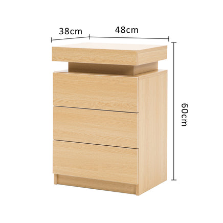 La Bella 2 Set Bedside Table 3 Drawers RGB LED Bedroom Cabinet Nightstand Gloss GLORY - Oak