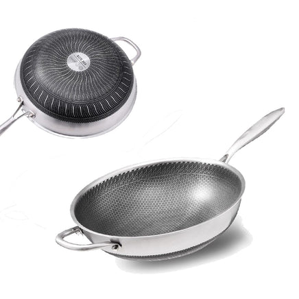 34cm 304 Stainless Steel Non-Stick Stir Fry Cooking Kitchen Wok Pan without Lid Honeycomb Double Sided